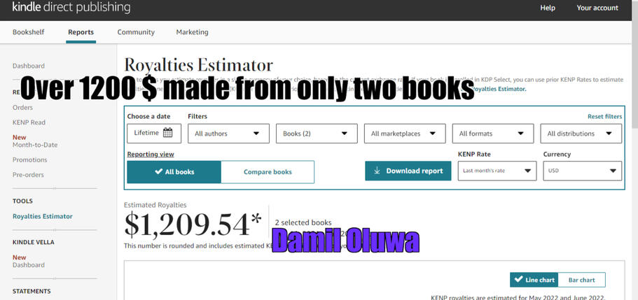 If you had 5 books that sold at $5 each. Each book is purchased 10times monthly5 books X $5 X 10sales = $500/month.Check how much is $500 in Naira. Just google it for yourself.
